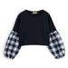 Our Black & White Plaid Contrast-Sleeve Crop Top Features: