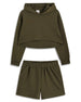 Our Green High Low Hem Long Sleeves Hoodie & Paperbag Shorts Features: