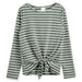 Our Green & White Striped Tie-Front Long Sleeves Top Features: