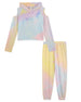 Our Yellow & Blue & Pink Tie-Dye Cold-Shoulder Hoodie & Joggers Features: